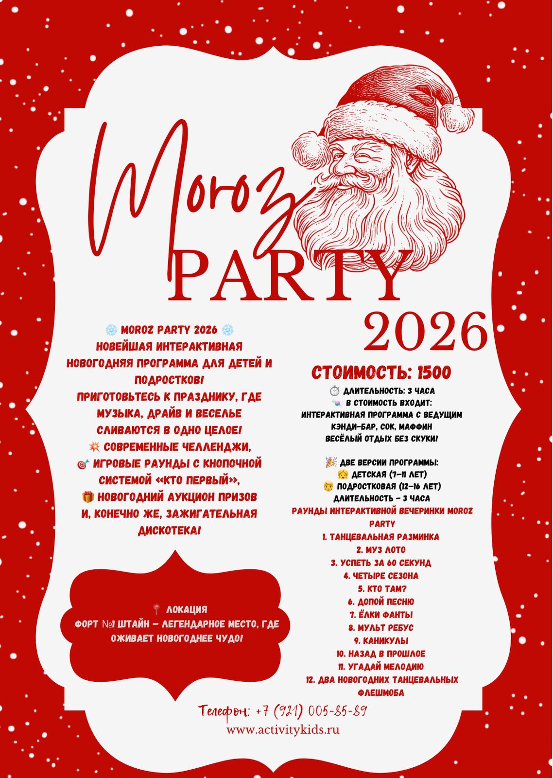Стоимость (от 20 участников) - 1500 руб. с ребёнка.