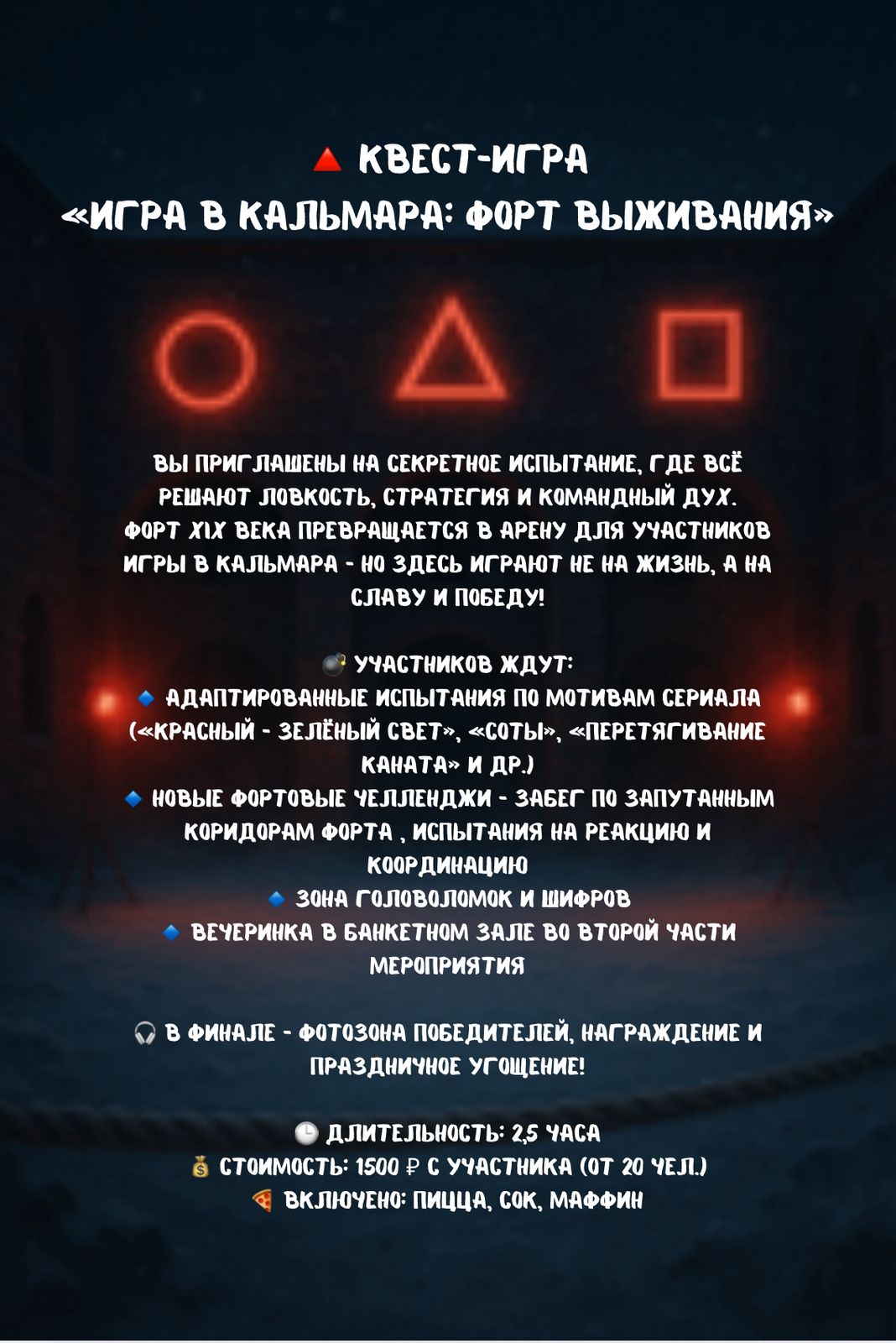 🔺 КВЕСТ-ИГРА «ИГРА В КАЛЬМАРА: ФОРТ ВЫЖИВАНИЯ»