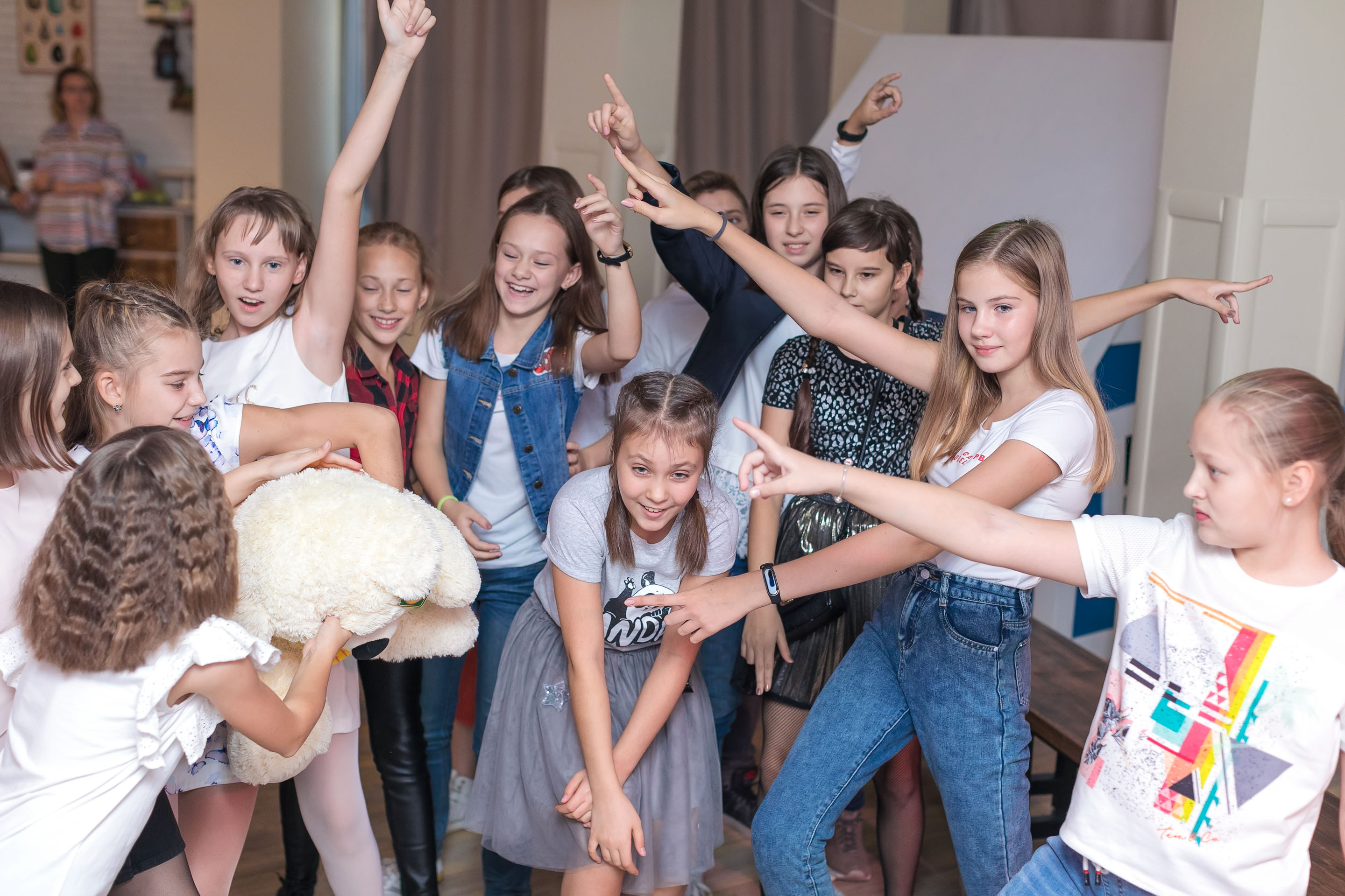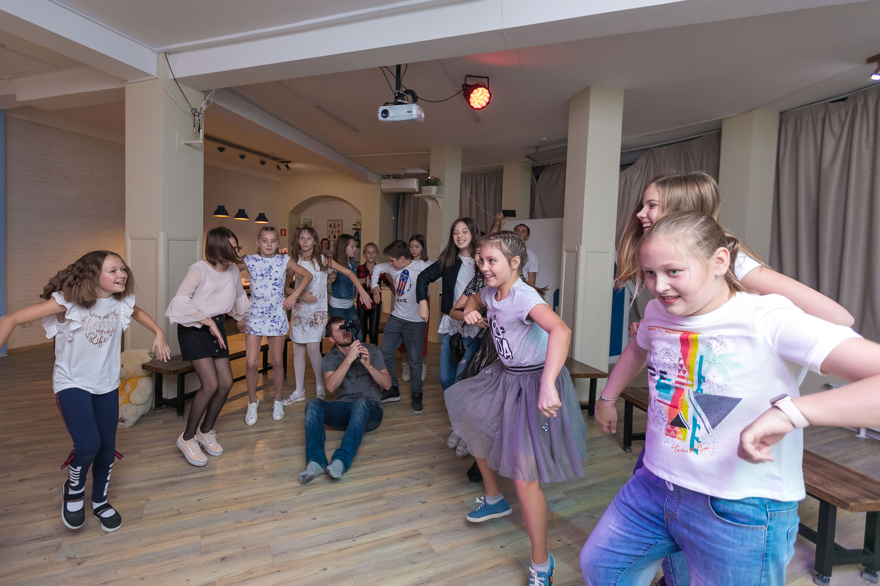 Тематические игры и конкурсы по мотивам популярных телешоу с использованием экрана, проектора, кнопочной системы, взрыв чаши по командам + совместные танцевальные и песенные интерактивы.