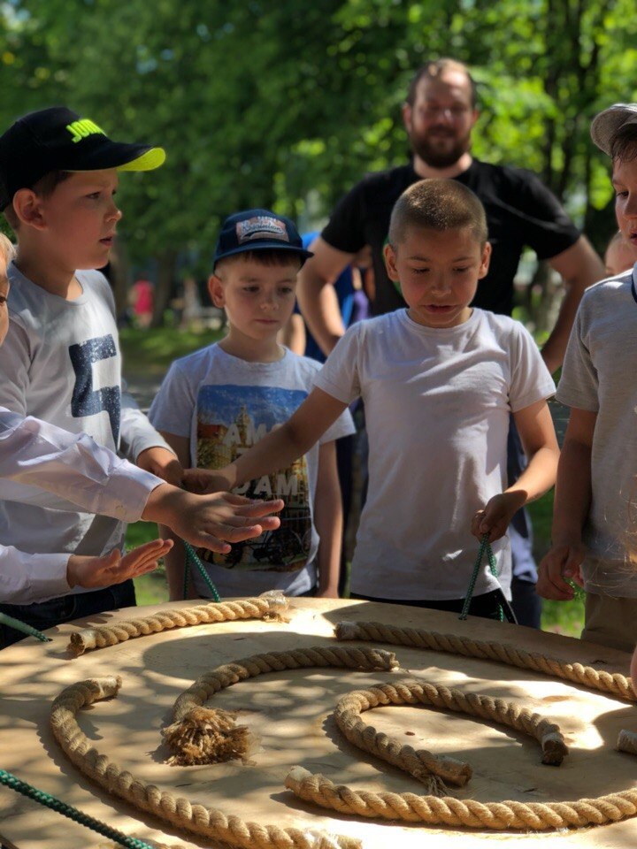 Ребята разбиваются на команды по 8-12 человек и, в сопровождении ведущих, проходят испытания на тематических станциях, получая элементы подсказок, которые помогут им получить ключ от сундука.