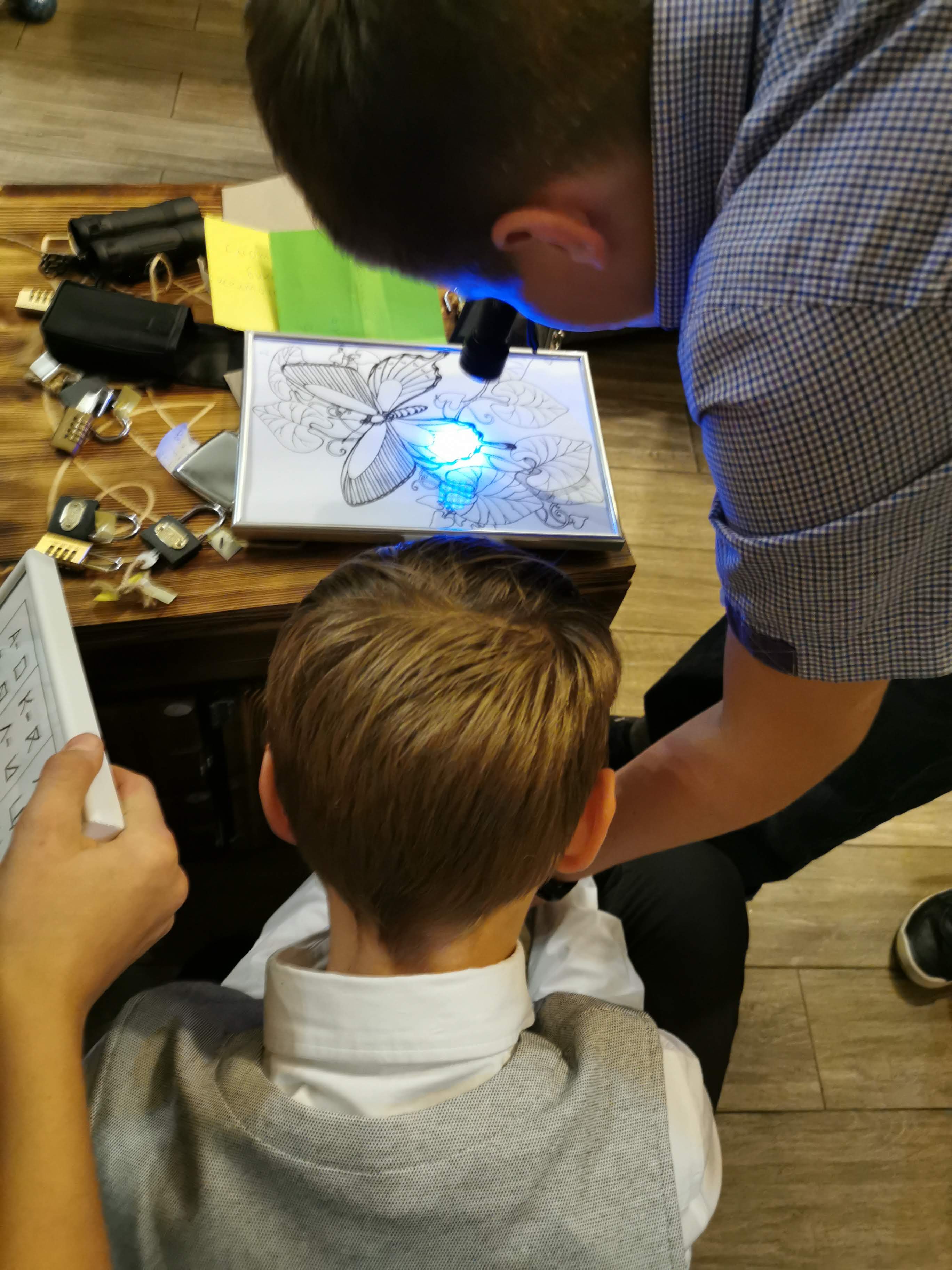 За время квеста ребята выполняют задания с биноклями, зеркалами, ультрафиолетовыми фонарями, картами, находят тайники, решают головоломки, участвуют в интерактивах, демонстрируемых на большом экране и связанных с интуицией команд.