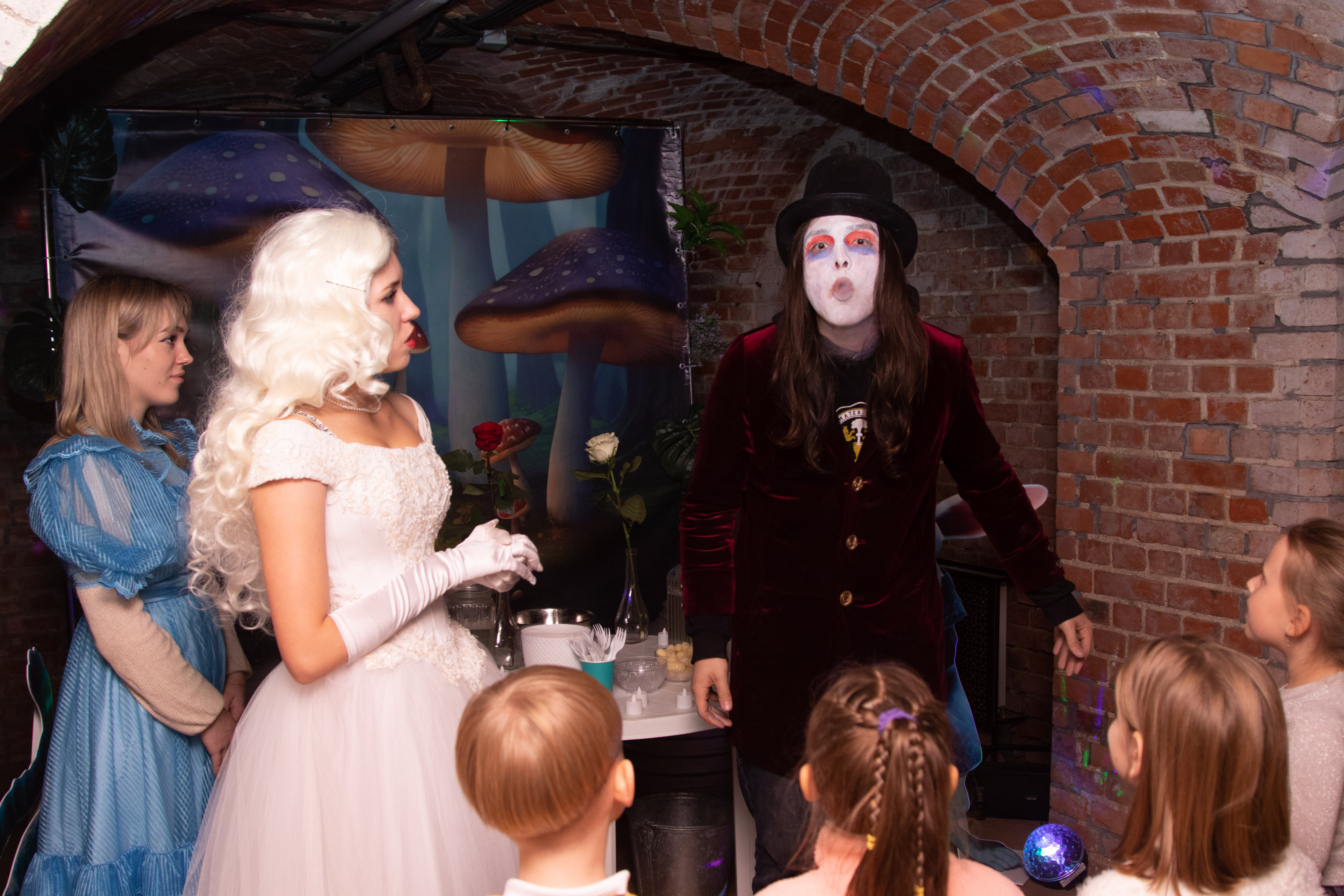 Расширенный пакет - 23000. Квест вечеринка в сопровождении ведущего и персонажа Алисы и белой королевы, шоу с жидким азотом, тематическое украшение игрового пространства, фотозона (баннер), оформление банкетной зоны, одноразовая посуда, аренда банкетной и игровых зон, угощение для безумного чаепития, программа во 2й части мероприятия. Стоимость до 10 ребят в случае большего количества участников оплачивается 500 руб дополнительно с участника, начиная с 11-го. Без дополнительной оплаты проходят 2 взрослых, в случае большего количества взрослых - оплачиваются также льготные билеты на форт (250 руб) с правом посещения экскурсии, начиная с 3-его.